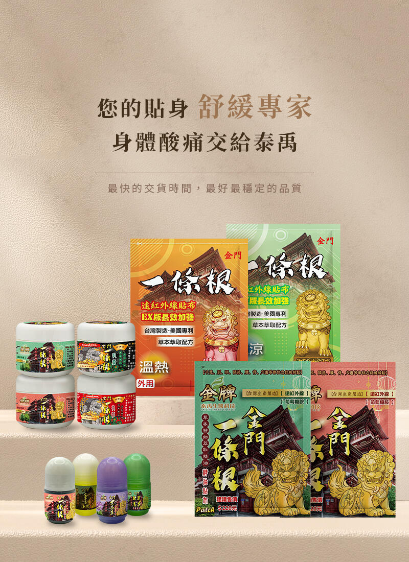 來自台灣原生草本的智慧療癒力,「一條根貼布」嚴選珍貴的一條根萃取精華,結合多種舒緩植物成分,打造專為現代人設計的貼身護理。